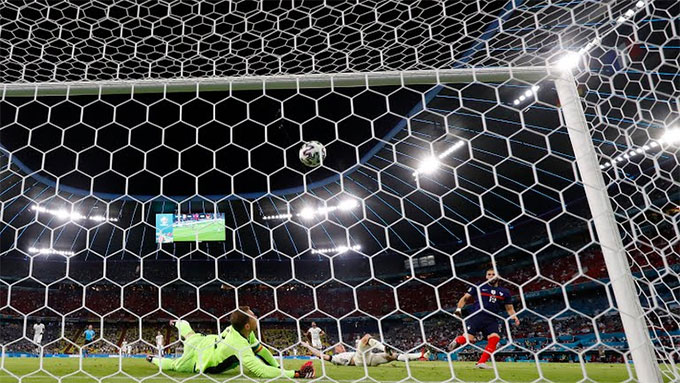 Thật vậy, trong khi cả 6 cú dứt điểm của Đức đều không đi trúng mục tiêu thì mỗi lần các cầu thủ Pháp tấn công là y như rằng hàng phòng ngự đối phương lại chao đảo. Đơn cử như ở tình huống diễn ra ở phút 16, khi tiền đạo siêu tốc độ Mbappe đi bóng từ cánh trái vào trung lộ trước khi tung ra cú đá rất mạnh bằng chân phải buộc thủ môn Neuer của ĐT Đức phải trổ tài.