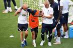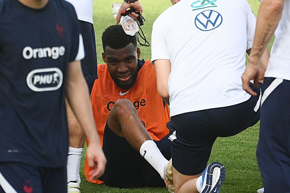 Marcus Thuram cảm thấy khó chịu phần đầu gối, trong khi Thomas Lemar tập tễnh rời sân tập ở Budapest dưới sự hỗ trợ của hai nhân viên y tế.