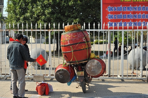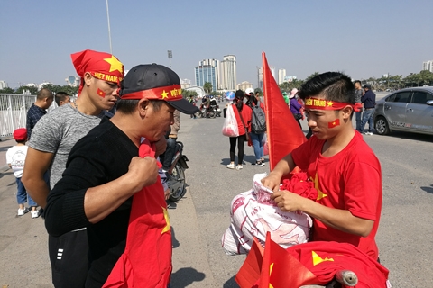 Những người bán cờ, đồ cổ vũ cũng đông không kém |