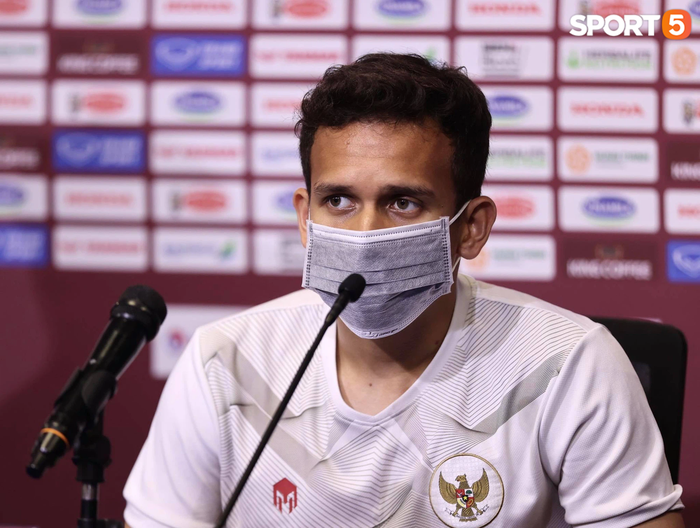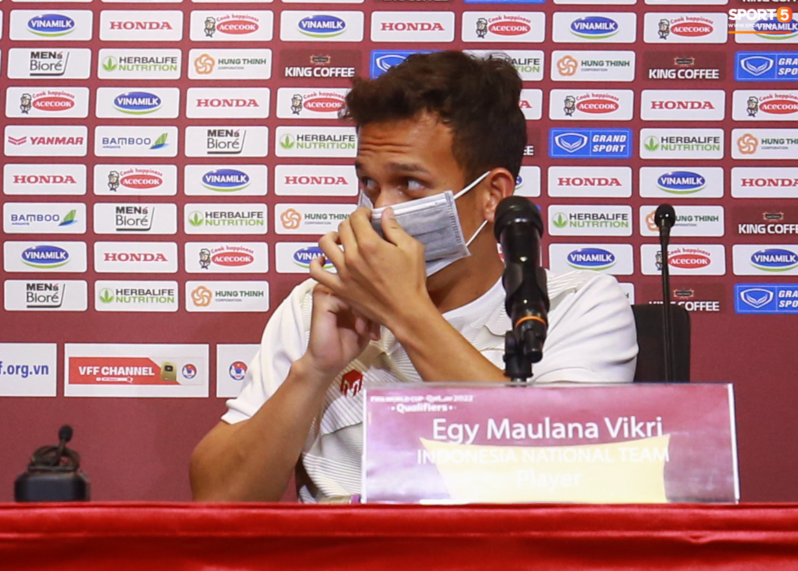 Egy Maulana nhanh chóng đeo khẩu trang và bắt đầu cuộc họp báo trước trận Việt Nam - Indonesia