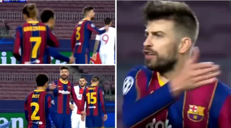 Cho rằng Griezmann để Kylian Mbappe vượt qua quá dễ dàng khiến Sergino Dest phải vất vả phá bóng trong vùng cấm, Pique không giữ được bình tĩnh. Trung vệ kì cựu hướng về phía Griezmann.