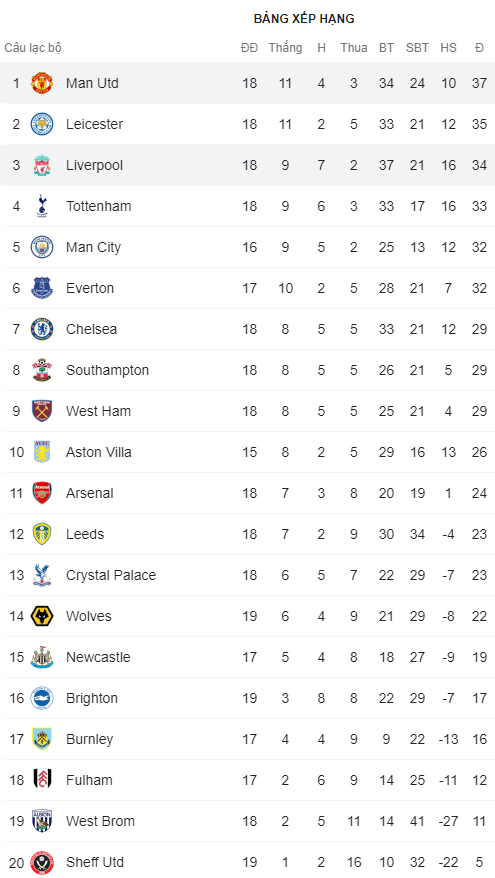 Chung cuộc, trận đấu đã kết thúc với tỷ số hòa không bàn thắng. Với kết quả này, đoàn quân của HLV Solskjaer đã trở thành nhà vô địch lượt đi.