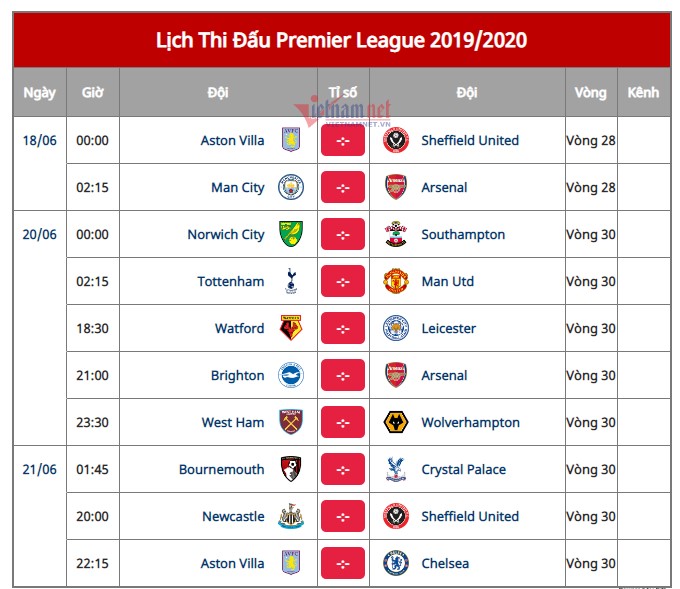 17/06/2020 20:40Premier League trở lại: MU kiếm tiền, Liverpool ẵm Cúp