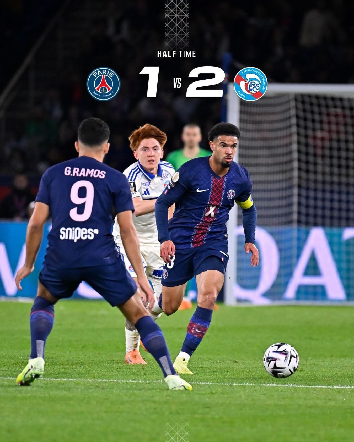 Tuy nhiên, Strasbourg - đội đang xếp thứ 3 trên bảng xếp hạng nhanh chóng đáp trả. Phút 26, Guela Doue tạt bóng chuẩn xác để Panichelli đánh đầu gỡ hòa 1-1, trước khi Moreira ghi bàn đẹp mắt ở phút 41, giúp đội khách dẫn 2-1 ngay trong hiệp 1.