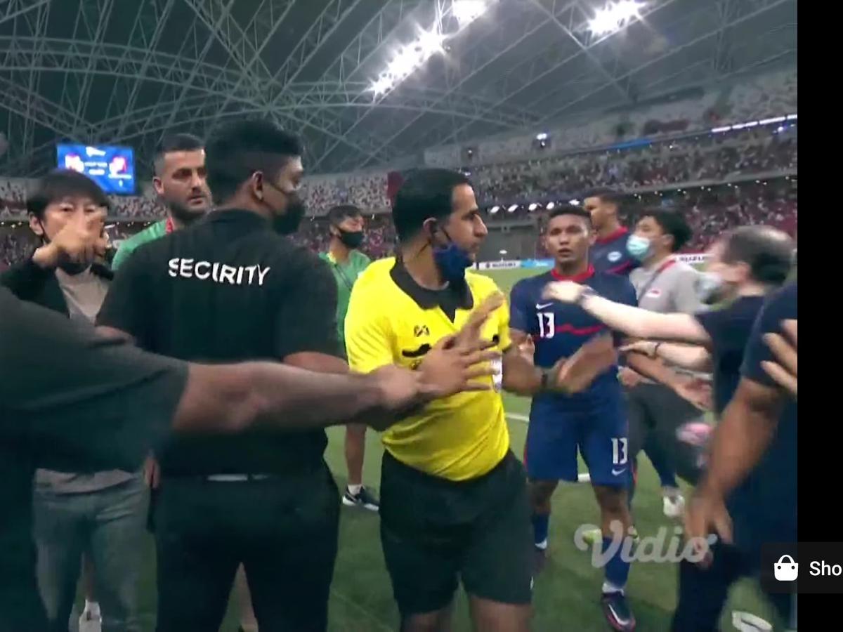 Tình hình suýt chút nữa trở nên tồi tệ hơn khi hậu vệ Safuwan Baharuddin của Singapore sau khi bị truất quyền thi đấu đã chỉ thẳng mặt và tranh cãi với ông Al Hatmi, buộc ban huấn luyện phải can thiệp.