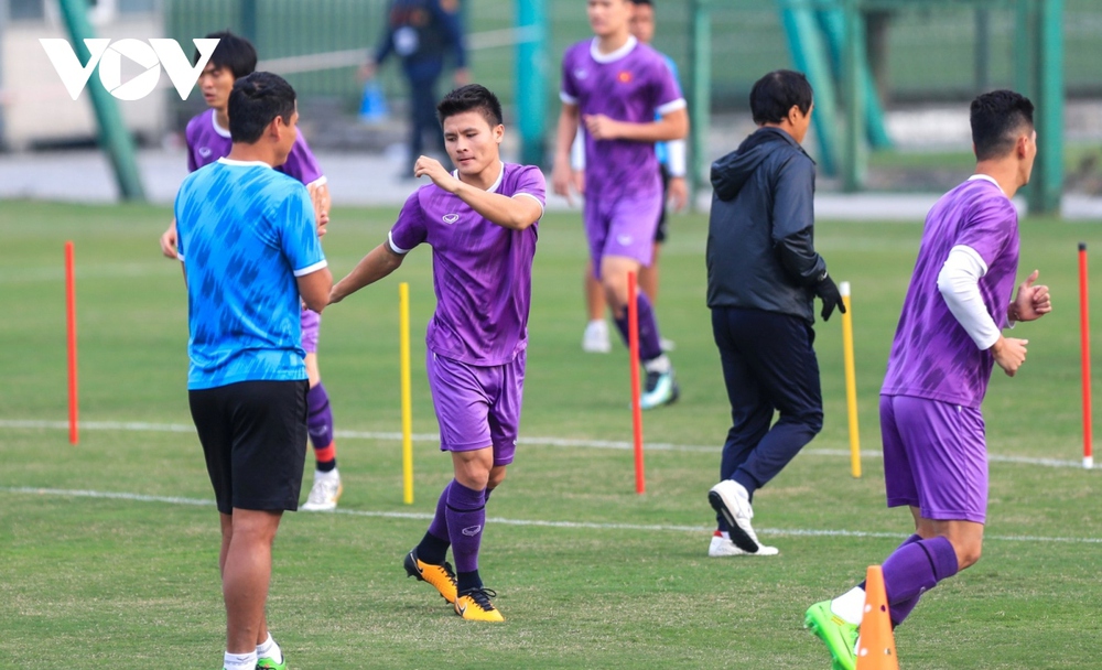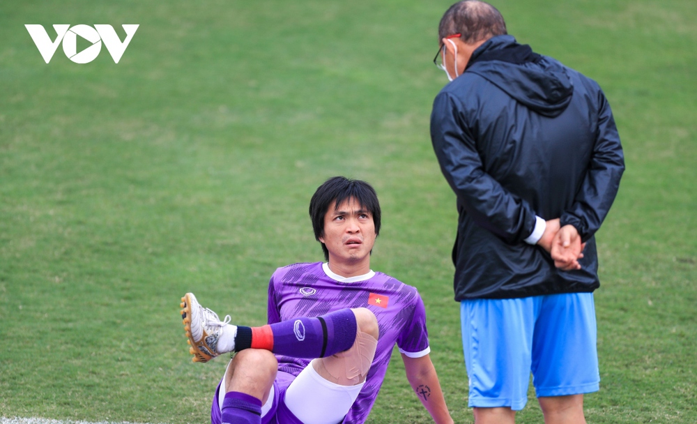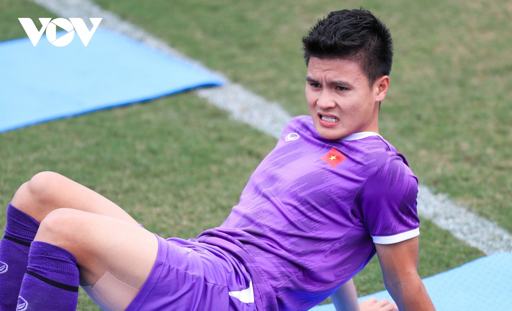 Quang Hải, Tuấn Anh và Quế Ngọc Hải khiến cổ động viên Việt Nam lo lắng khi phải băng chân trong buổi tập chiều ngày 1/1 của ĐT Việt Nam.