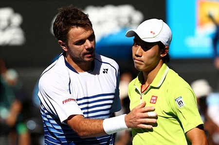 Nishikori (phải) chia tay Australian Open 2015 |