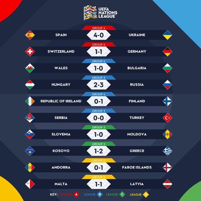 Ở trận đấu cùng giờ, ĐT Đức bị ĐT Thụy Sĩ cầm hòa 1-1, do đó Ukraine xếp thứ 2 với 3 điểm, Đức đã tụt xuống đứng thứ 3 với chỉ 2 điểm và Thụy Sĩ đang tạm xếp bét bảng với chỉ 1 điểm trong tay.