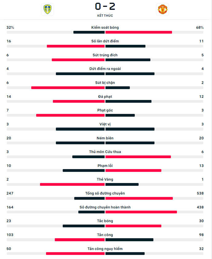4 phút sau, tỷ số được ấn định 2-0 cho Man United khi Garnacho thoát đi cực nhanh bên cánh trái trước khi cứa lòng bằng chân phải về góc xa. Thắng trận, Man United có 46 điểm và tạm leo lên ngôi nhì bảng còn Leeds đứng thứ 17 với 19 điểm.