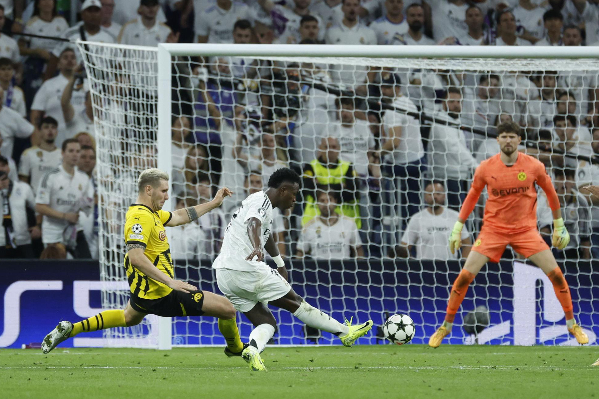 Pha nâng tỷ số lên 4-2 là một trong những bàn đẹp nhất lịch sử Champions League: Vini đoạt bóng gần ở sát biên dọc ngang vòng cấm đội nhà, thực hiện cú bứt phá tốc độ vượt quãng đường 70 m sang phía đối diện trước khi tung cú sút đánh bại thủ môn Kobel.