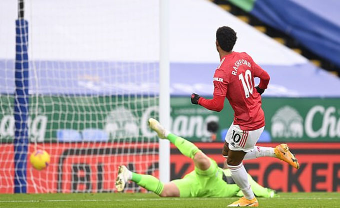Xuất phát từ đường chuyền của Daniel James, Fernandes nhoài người kiến tạo cho Rashford trong tư thế không bị ai kèm sửa lòng hiểm hóc bằng chân phải hạ gục thủ thành Kasper Schmeichel. Một pha làm bàn lấy công chuộc tội của Rashford sau tình huống bỏ lỡ ở đầu trận.