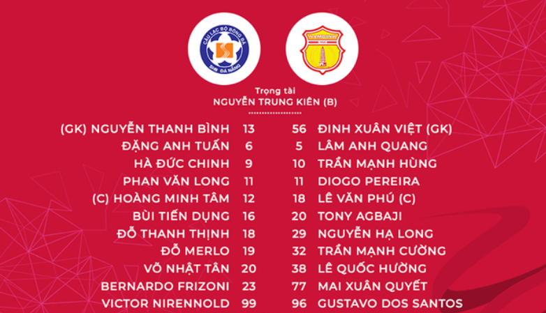 Phút 17, Hà Đức Chinh có pha bay người đánh đầu bồi làm tung lưới thủ thành Đinh Xuân Việt, nhưng bàn thắng không được công nhận do tiền đạo bên phía SHB Đà Nẵng đã rơi vào thế việt vị.