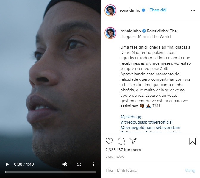 28/08/2020 18:46Ronaldinho sắp ra mắt bộ phim tự thuật sau khi ra tù
