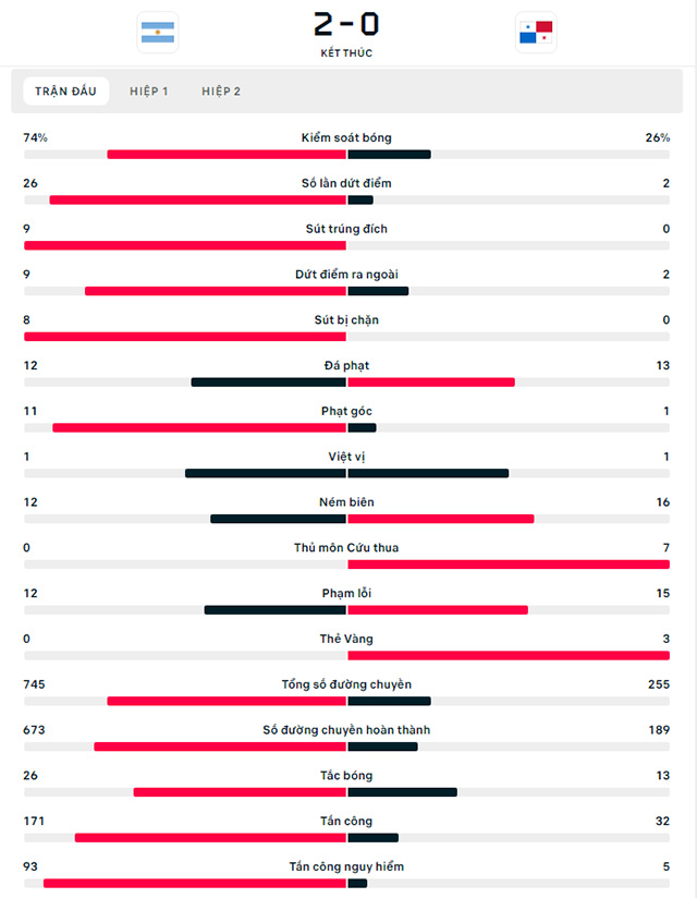 Có được bàn thắng mở tỷ số, Argentina chơi tốt hơn. Nhưng cũng phải đợi tới phút 89, khoảng cách mới được nhân đôi. Lần này, Messi với pha đá phạt đẳng cấp đã không còn tìm đến cột dọc mà đi thẳng vào lưới đối phương. Chung cuộc, Argentina thắng Panama 2-0.