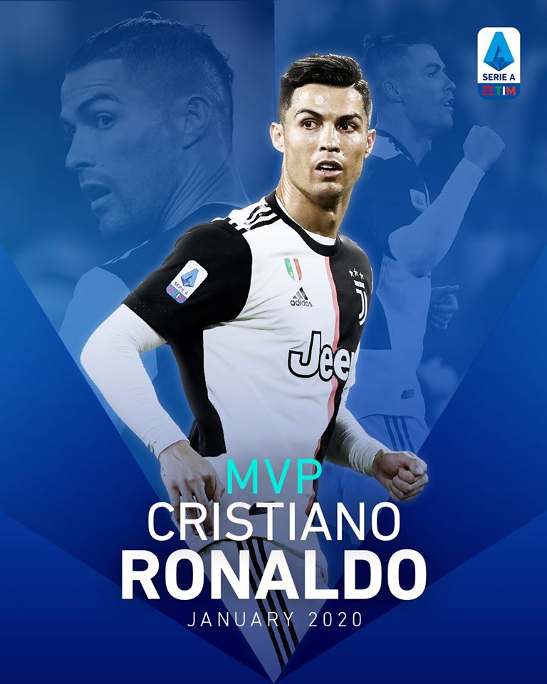 Vừa bước sang năm 2020, Ronaldo đã "phá dớp" khi lần đầu nhận danh hiệu cầu thủ xuất sắc nhất tháng ở Serie A. Đây là phần thưởng xứng đáng bởi CR7 đã thể hiện phong độ chói sáng trong năm mới.