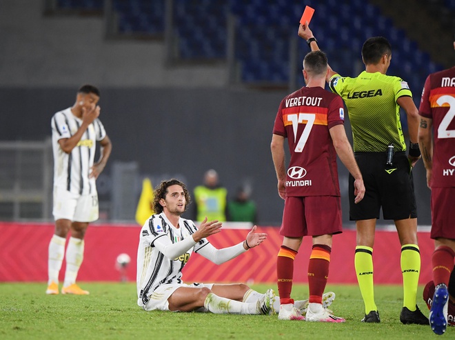 Mọi thứ càng trở nên khó khăn hơn khi Juventus phải chơi thiếu người từ phút 62. Adrien Rabiot nhận thẻ vàng thứ 2 sau pha vào bóng thô bạo với Mkhitaryan. Trước đó, anh đã nhận thẻ vàng trong tình huống để bóng chạm tay dẫn đến quả phạt đền ở phút 30.