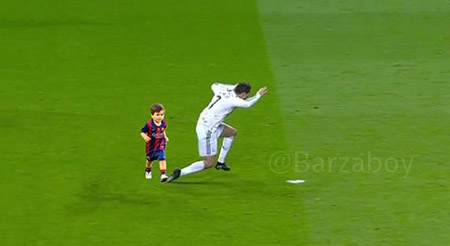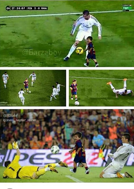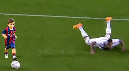 28/05/2015 17:29Ronaldo ngã nhào vì bị con trai Messi ngáng chân