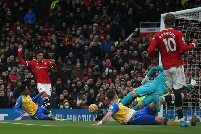 Chỉ 2 phút sau, Man United sở hữu cơ hội thứ 2 để ghi bàn. Đoạt được bóng bên phần sân nhà, Quỷ đỏ chuyển trạng thái phản công thần tốc. Sancho đột phá dũng mãnh nhưng đáng tiếc cú tỉa bóng bằng chân phải của anh không thắng được Forster.