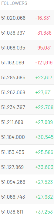 Hiện tại, trang Instagram của Juve chỉ còn 51.020.066 người theo dõi, giảm 0,37% so với số liệu trước đó 1 tuần lễ.