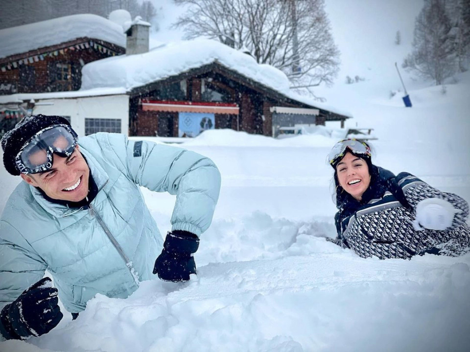 Trong ngày sinh nhật 5/2, Ronaldo dành buổi sáng để đi dã ngoại với Georgina. Trên Instagram cá nhân, người đẹp Argentina này chia sẻ những tấm hình cô cùng Ronaldo nghịch tuyết và trượt tuyết. Tiền đạo Juventus luôn nở nụ cười khi chụp hình cùng bạn gái.