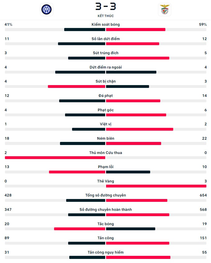Chung cuộc, Inter hòa Benfica 3-3 trong trận cầu hấp dẫn. Sau 2 lượt trận, Nerazzurri đánh bại Benfica với tổng tỷ số 5-3 để giành quyền vào bán Champions League 2022/23. Đối thủ của Inter không ai khác ngoài CLB cùng thành phố AC Milan. Đây là lần đầu tiên Inter vào bán kết Champions League kể từ mùa 2009/10 - mùa giải mà họ đã lên ngôi vô địch.
