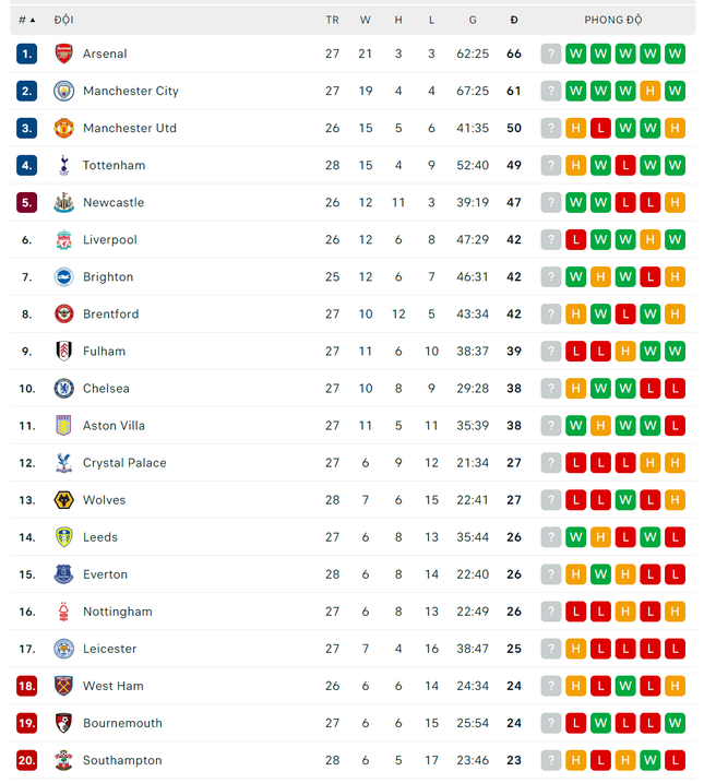 Mất điểm cay đắng vào phút chót, Tottenham bỏ lỡ cơ hội vượt qua MU. Lúc này, Tottenham đã có 49 điểm nhưng vẫn kém MU 1 điểm. Ngoài ra, họ còn có nguy cơ lớn mất vị trí thứ 4 vào tay Newcastle, đội đang có 47 điểm nhưng đá ít hơn 2 trận.