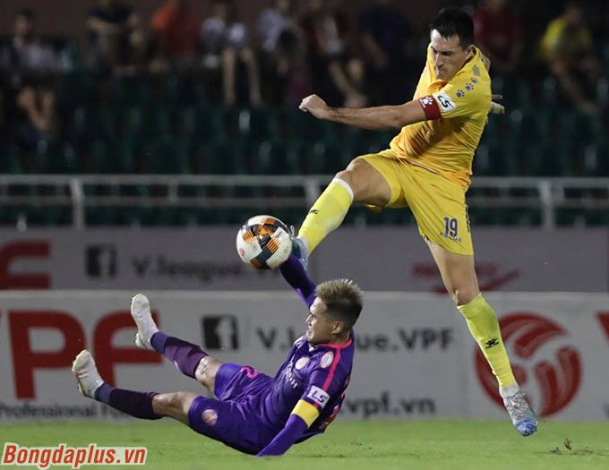 Sài Gòn không cầm bóng nhiều và cũng chẳng tấn công áp đảo như DNH Nam Định. Nhưng họ biết cách kết liễu đối phương khi cần thiết. Phút 34, Geovane khéo léo vượt qua tiền vệ DNH Nam Định trước khi tung cú sút hiểm hóc ngoài vòng cấm khiến thủ môn Xuân Việt có lần thứ 2 vào lưới nhặt bóng.