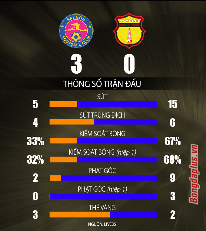 Sài Gòn FC: Quốc Phương (1', 49'), Geovane (34')'