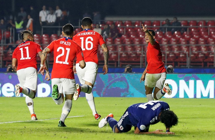 Ngược lại, sau quãng thời gian đầu nhập cuộc không tốt, ĐT Chile đã dần lấy lại nhịp điệu khi thời gian hiệp một trôi qua một nửa và điều gì đến cũng đã phải đến. Phút 41, Charles Aránguiz đá phạt góc hoàn hảo để Erick Pulgar - cầu thủ đang khoác áo Bologna bật cao đánh đầu hiểm hóc, mở tỷ số trận đấu.