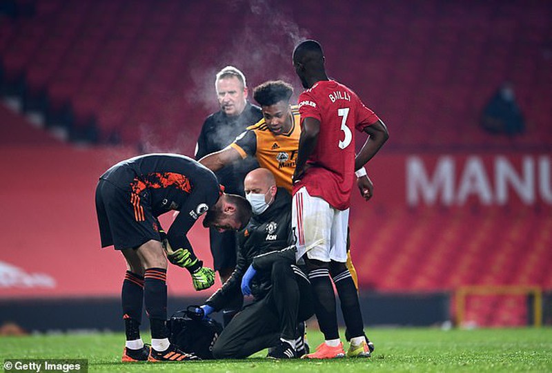 Ở trận Manchester United thắng Wolves 1-0, David De Gea đã bị đau sau pha va chạm với người đồng hương người Tây Ban Nha Adama Traore trong hiệp hai.