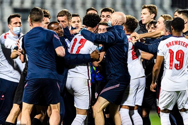 Tiền vệ Curtis Jones của U21 Anh đã không giữ nổi bình tĩnh sau khi trận đấu với U21 Croatia kết thúc. Anh lao vào đám đông cầu thủ U21 Croatia sau khi hứng chịu vài lời khiêu khích. Rất may là BHL U21 Anh cũng như đồng đội đã giữ Jones lại được.
