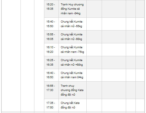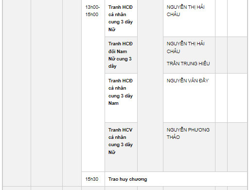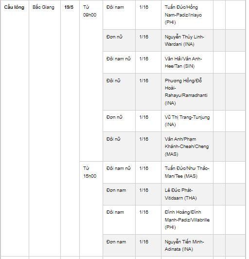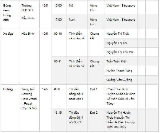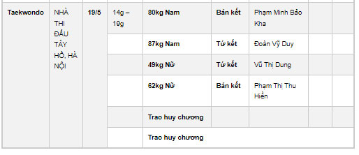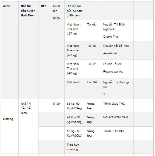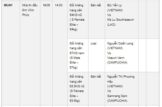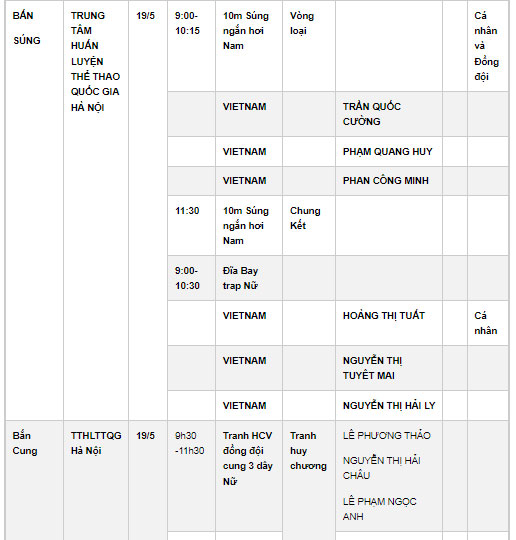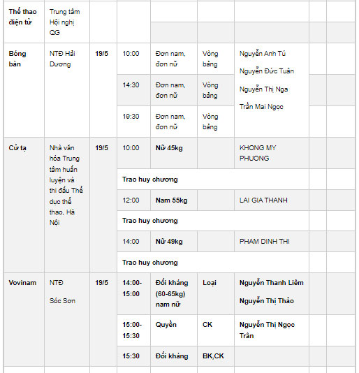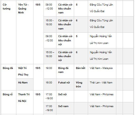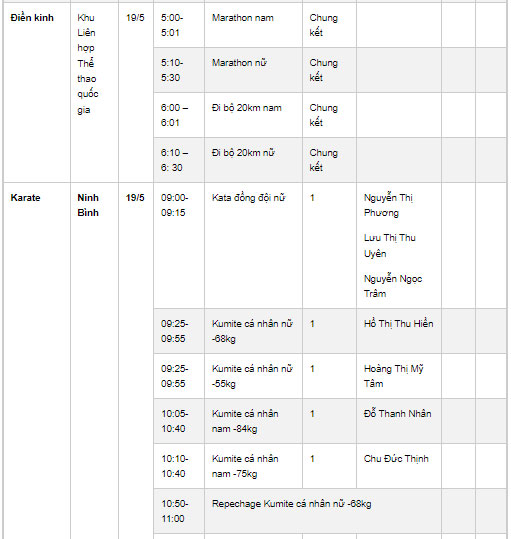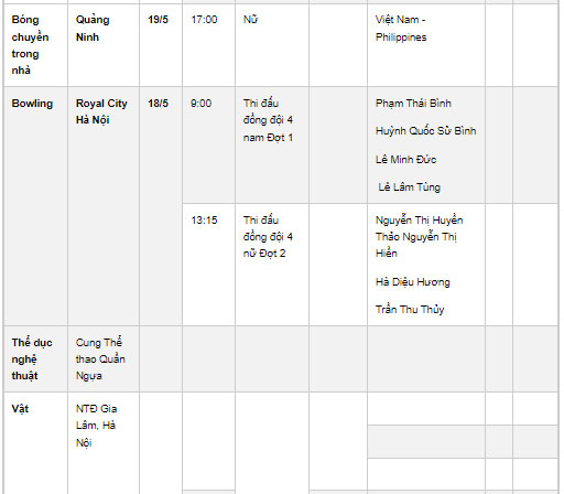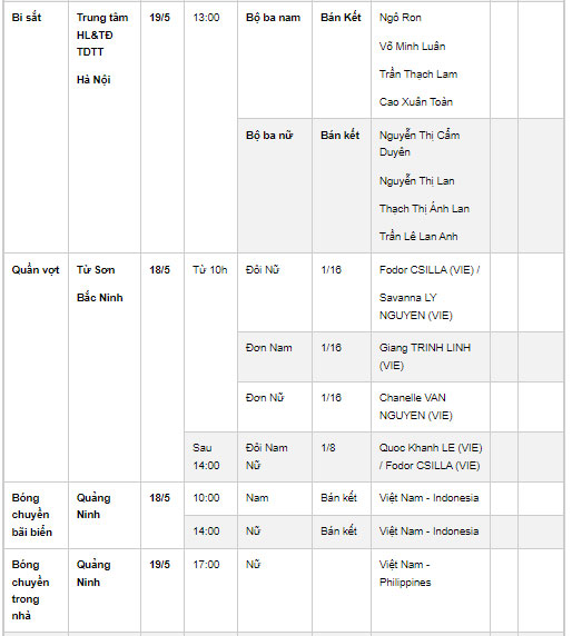CHƯƠNG TRÌNH THI ĐẤU CỦA ĐOÀN TTVN TẠI ĐẠI HỘI THỂ THAO ĐÔNG NAM Á - SEA GAMES 31 TẠI VIỆT NAM