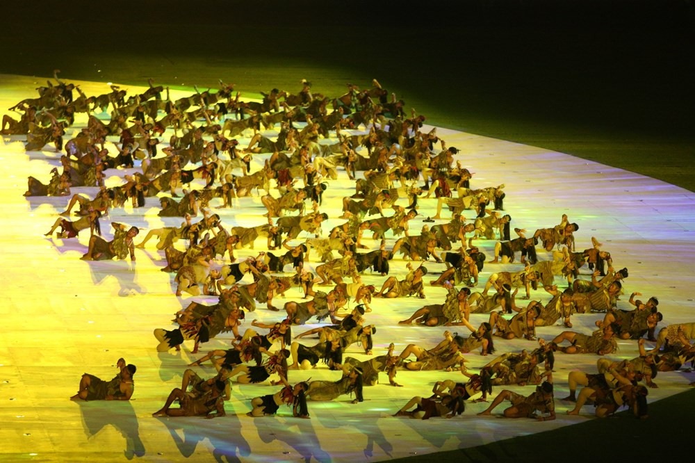 11 đoàn thể thao diễu hành ra sân khấu chính của lễ khai mạc