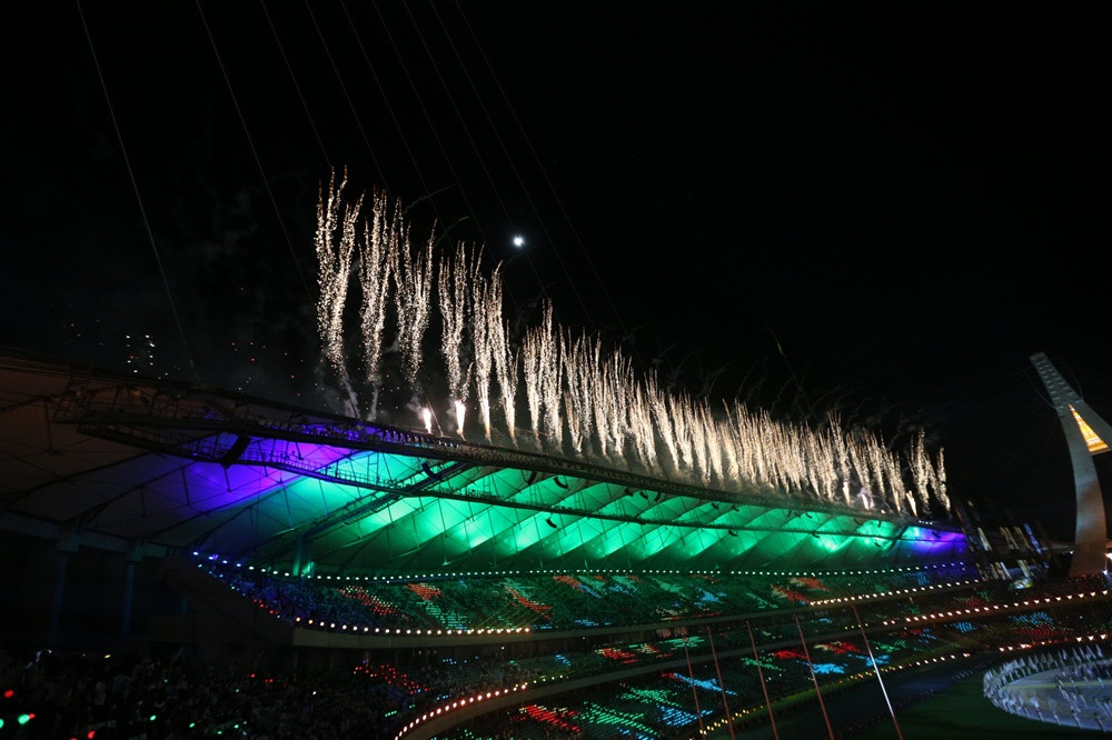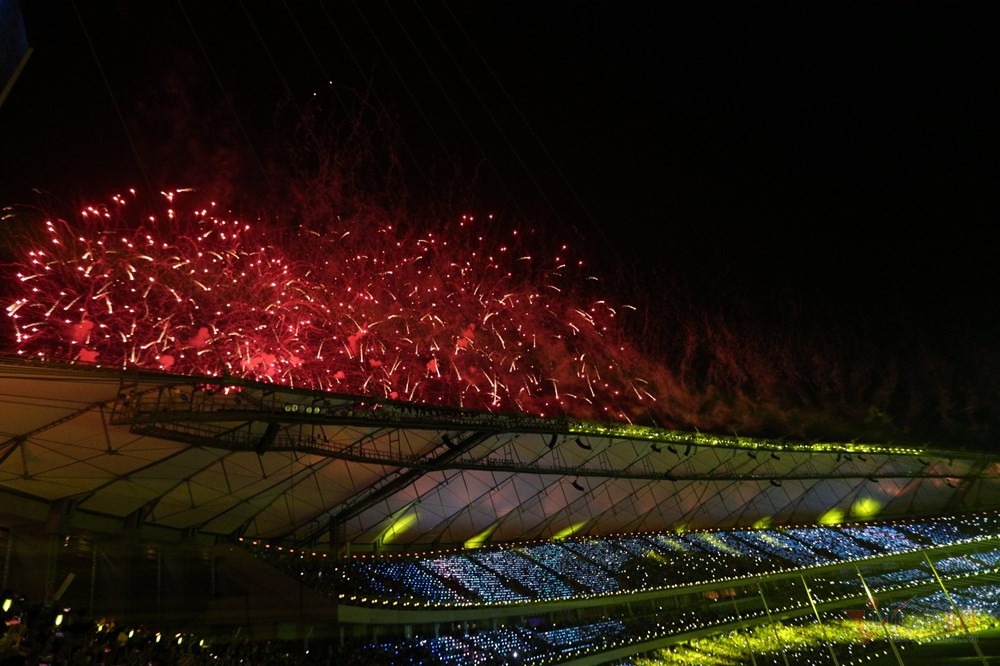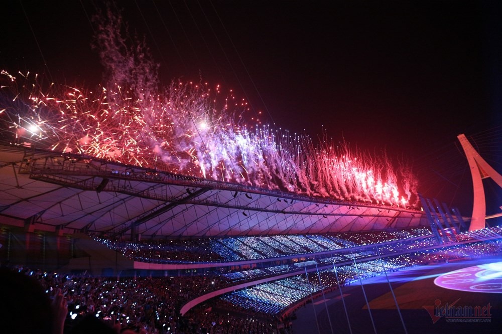 Màn pháo hoa rực rỡ trên bầu trời sân vận động Morodok Techo ở thủ đô Phnôm Pênh, cùng kỹ xảo ánh sáng đẹp mắt khép lại buổi lễ khai mạc độc đáo, mang đậm bản sắc văn hóa và con người Campuchia.