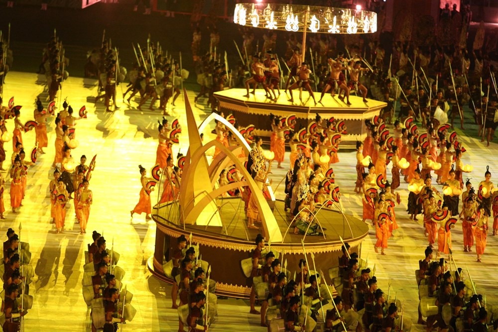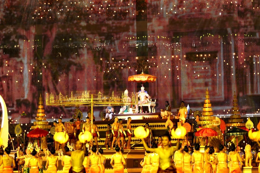 Văn hoá Campuchia có ảnh hưởng lớn từ văn hoá Ấn Độ. Ở đất nước của Angkor Wat, 90% người dân theo đạo Phật. Trong lễ khai mạc, nhiều nghệ sĩ tham gia biểu diễn đã mặc trang phục Phật giáo, với những bông sen trắng trên tay.