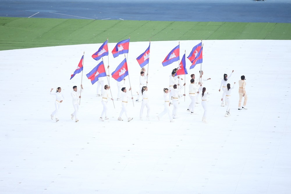 Tiến ra sân cuối cùng là đoàn Campuchia. Đoàn thể thao nước chủ nhà tham dự với tổng số 896 VĐV, mục tiêu giành ngôi nhất toàn đoàn.