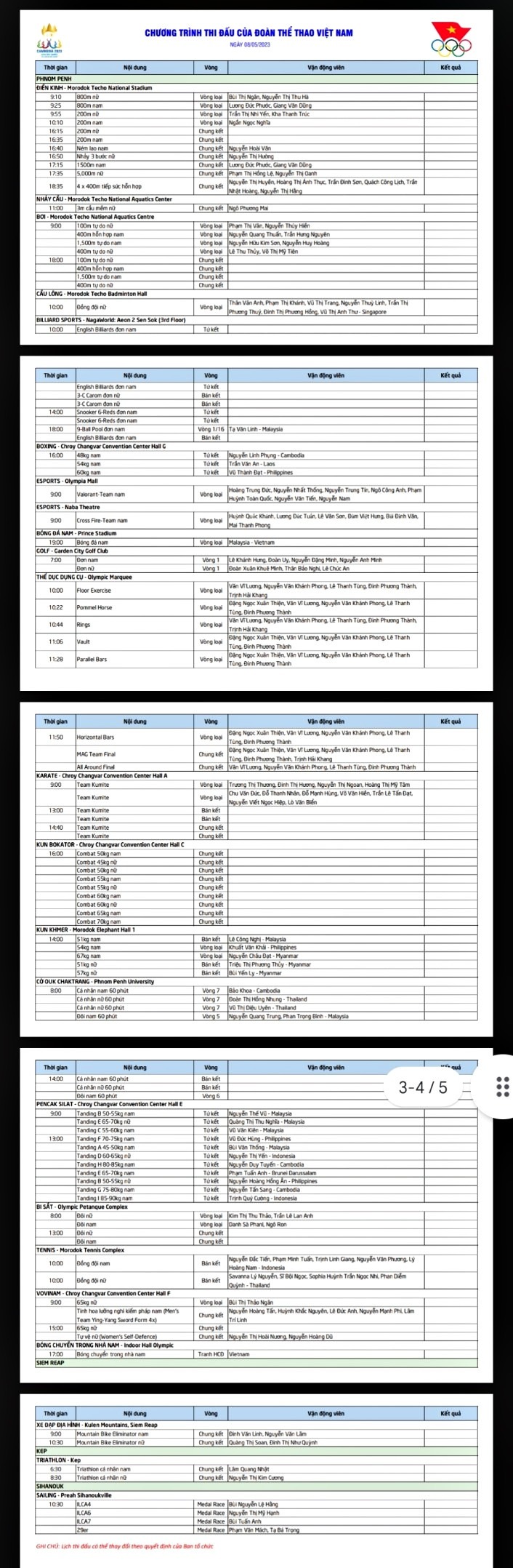 Lịch thi đấu của đoàn thể thao Việt Nam ngày 8/5