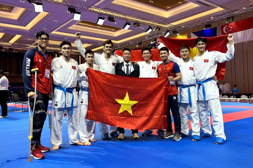 Giành chiến thắng nghẹt thở 3-2 trước các VĐV của Malaysia, đội tuyển kumite Việt Nam gồm các võ sĩ Chu Văn Đức, Đỗ Thanh Nhân, Đỗ Mạnh Hùng, Võ Văn Hiền, Trần Lê Tấn Đạt, Nguyễn Viết Ngọc Hiệp, Lò Văn Biển giành HCV nội dung đồng đội nam.