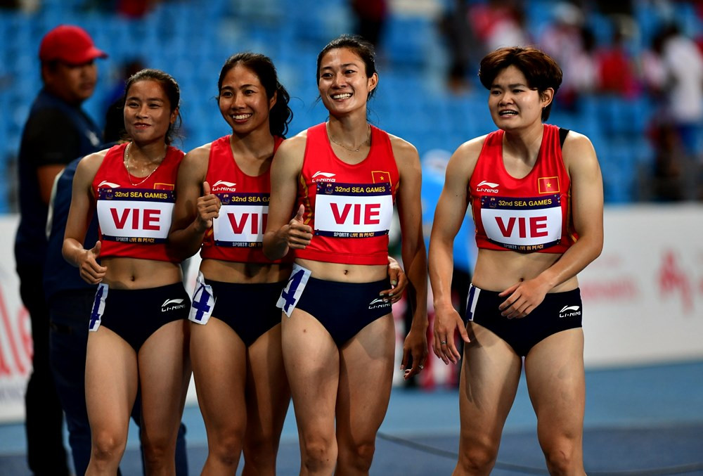 Đội chạy tiếp sức nữ Việt Nam gồm Hà Thị Thu, Lê Tú Chinh, Phùng Thị Huệ và Hoàng Dư Ý cán đích thứ hai sau Thái Lan, qua đó giành HCB nội dung 4x100m.