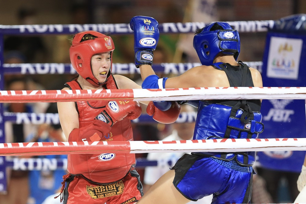 Võ sĩ Bùi Yến Ly tỏ ra quá mạnh so với tay đấm nước chủ nhà, Sreyphin Tour của Campuchia ở hạng cân 57kg. Đại diện của Việt Nam giành chiến thắng áp đảo đối thủ để mang về tấm HCV thứ 5 cho ĐT Kun Khmer Việt Nam.