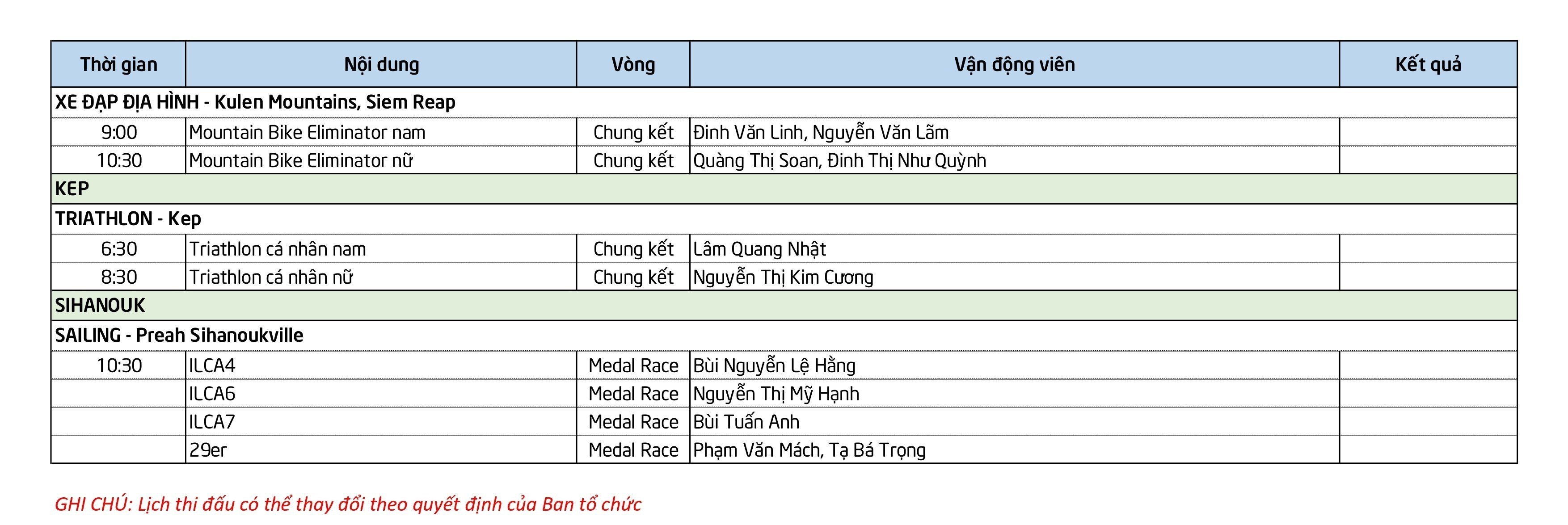 Các môn như bi sắt, xe đạp địa hình, triathlon... cũng có khả năng đóng góp HCV trong ngày thi đấu hôm nay.