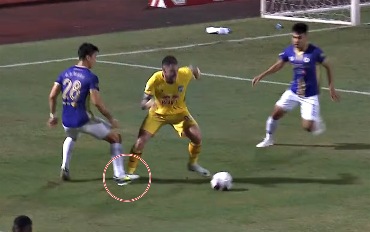 Pha quay chậm trên truyền hình cho thấy rõ Duy Mạnh phạm lỗi và xứng đáng bị thổi phạt. Tuy nhiên, trọng tài Ngô Duy Lân xác định Duy Mạnh không phạm lỗi, dù chỉ đứng cách pha phạm lỗi khoảng 4 m, có góc quan sát tốt, không bị che mắt.