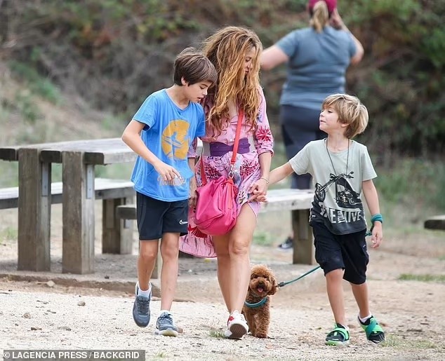 Daily Mail tung loạt hình ảnh mới nhất của Shakira trong bối cảnh danh tính bạn gái mới của Pique vừa được truyền thông tiết lộ. Ngôi sao người Colombia đưa hai con trai là Milan, 9 tuổi và Sasha, 7 tuổi đi dạo ở công viên.