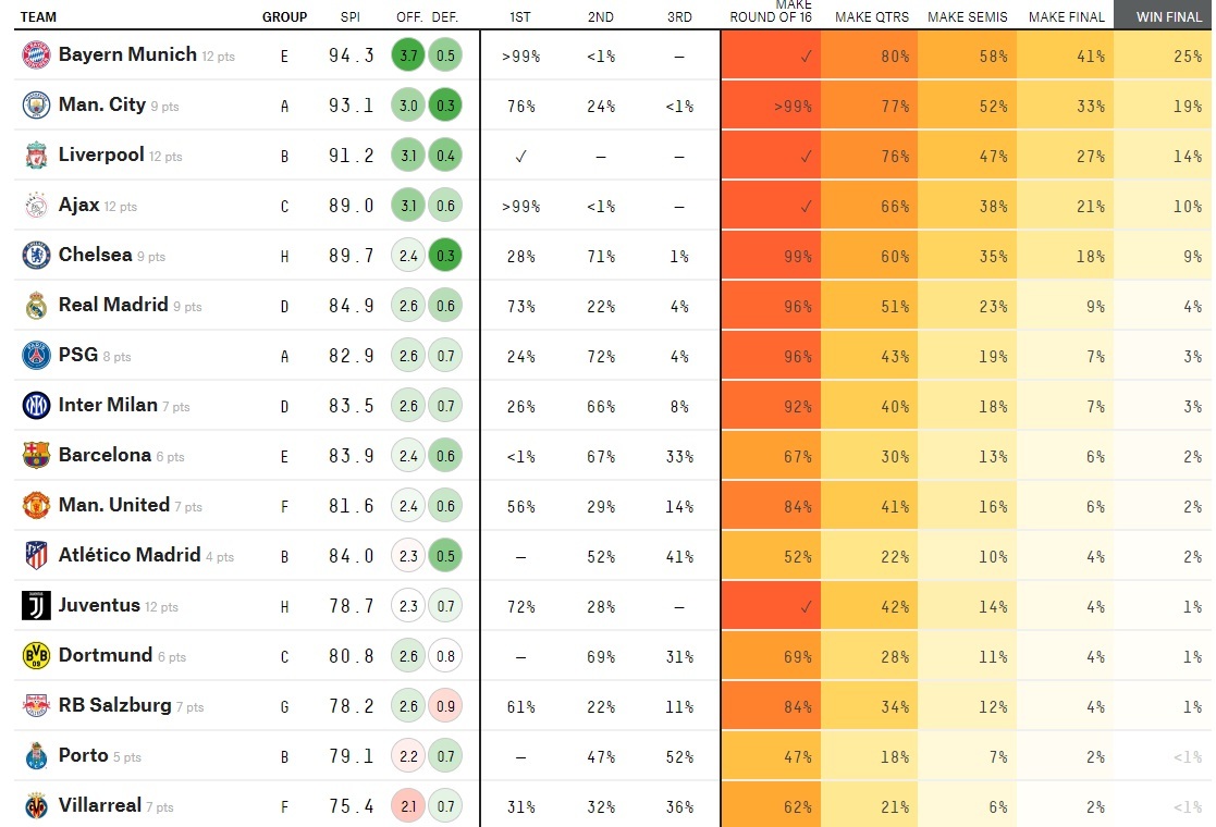 Thay vào đó, gã khổng lồ của bóng đá Đức, đội đầu tiên lấy vé sớm vòng knock-out, được đưa ra xác suất chiến thắng là 25%, cao hơn bất cứ đối thủ nào.