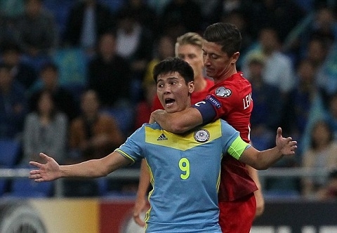 Lewandowski khóa cổ đội trưởng Baurzhan Islamhan |