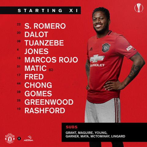 Bộ ba Mason Greenwood, Tahith Chong và Angel Gomes được đá ra sân ngay từ đầu trong cuộc tiếp đón "gã tí hon" tời từ Kazakhstan. Những cựu binh như Marcus Rashford, Nemanja Matic, Phil Jones và Sergio Romero cũng được đưa vào đội hình chính để dìu dắt các đàn em.