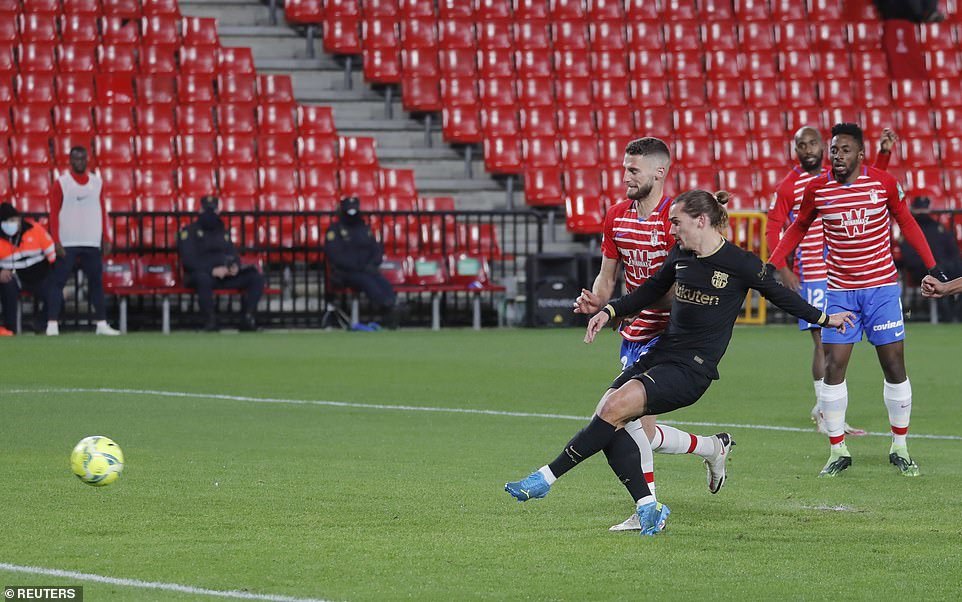 Granada chơi tốt và làm chủ thế trận ở những phút đầu nhưng chủ nhà không may thủng lưới trước. Phút 11, trong một tình huống phạt góc của Barca, Soldado đã chạm bóng vô tình trở thành đường kiến tạo cho Griezmann và tuyển thủ Pháp nhanh như chớp chọc thủng lưới thủ môn Rui Silva.