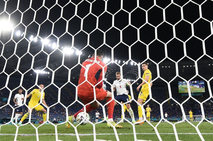 Giữa một rừng áo vàng các cầu thủ Ukraine, đường chuyền ấy chẳng khác nào tiếng sét giữa trời quang, bởi nó quá xuất thần, quá nhanh, và cũng quá chói sáng. Từ vị trí không hề việt vị, Harry Kane băng xuống nhanh như chớp, nhận bóng đối mặt thủ thành Bushchan, chuyển trụ sang chân trái, gẩy bóng bằng mũi giày chân phải đi bóng đi khỏi tầm tay, khẽ đập nhẹ vào ngực thủ thành đối phương đi thẳng vào lưới.