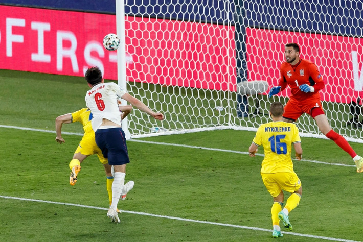 Trước đó 3 phút, ở ngay phút thứ hai của hiệp 2, Harry Kane bị đốn ngã ở vị trí cách khung thành Ukraine chừng 30 mét, chếch về bên trái. Luke Shaw treo bóng vào từ quả đá phạt. Ở bên đối diện, Maguire di chuyển đẹp mắt như Kane ở bàn thắng đầu tiên, bật cao tung người đánh đầu hiểm hóc tung lưới thêm lần nữa.