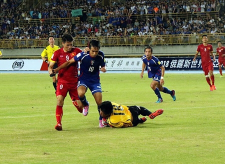 Văn Quyết (áo đỏ) đã bỏ lỡ khá nhiều cơ hội ghi bàn cho tuyển Việt Nam - Ảnh: Đoan Nhật |